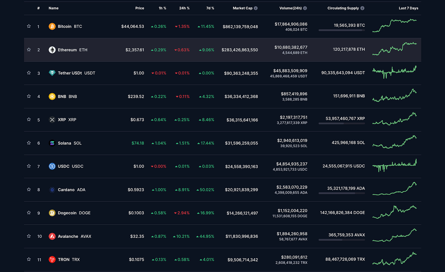 In an exhilarating week for crypto enthusiasts, Bitcoin once again broke barriers, reaching a new all-time high of $43,000 over the past couple of months. Some would say this is a sneak peek at the bull run. This surge has catalyzed positive momentum, with several altcoins experiencing notable gains. Our analysts delve into the factors driving this bullish trend and what it means for the broader market.
